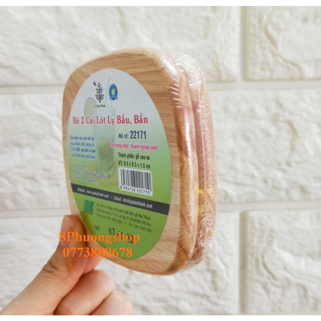 Bộ lót ly 2 cái bầu bần Gỗ Đức Thành 22171 - Lót ly 22171 bộ có 2 cáiBộ lót ly 2 cái Gỗ Đức Thành mã 22171 được làm từ gỗ cao su, bên trong lót miếng bần với kích thước đế lọt lòng có thể sử dụng cho nhiều loại ly lớn nhỏ khác nhau. Sản phẩm dễ thấm hút nước và có khả năng chịu nhiệt tốt, không bị cong vênh.