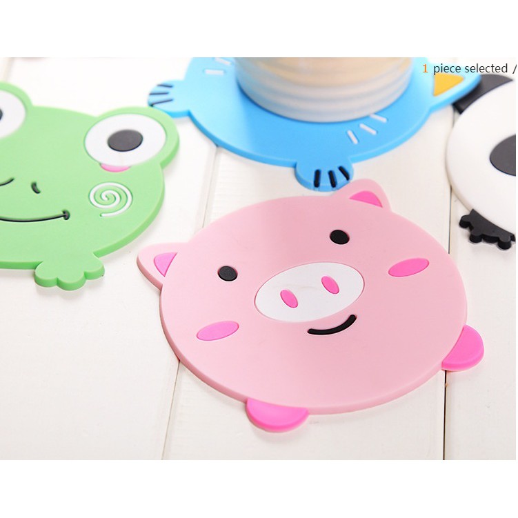 Lót ly cốc silicon hình thú đáng yêu kích thước 9cm chống nước thấm xuống mặt bàn