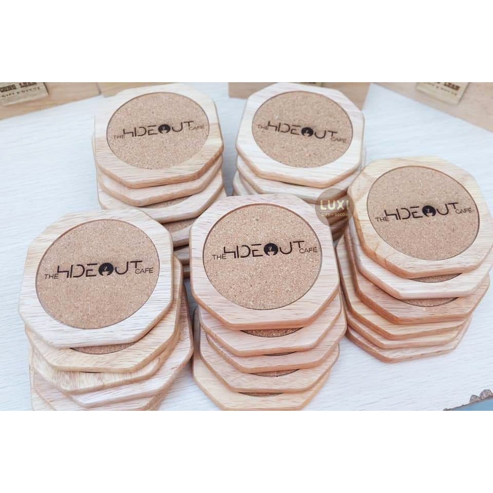Lót ly gỗ có khắc Logo yêu cầu