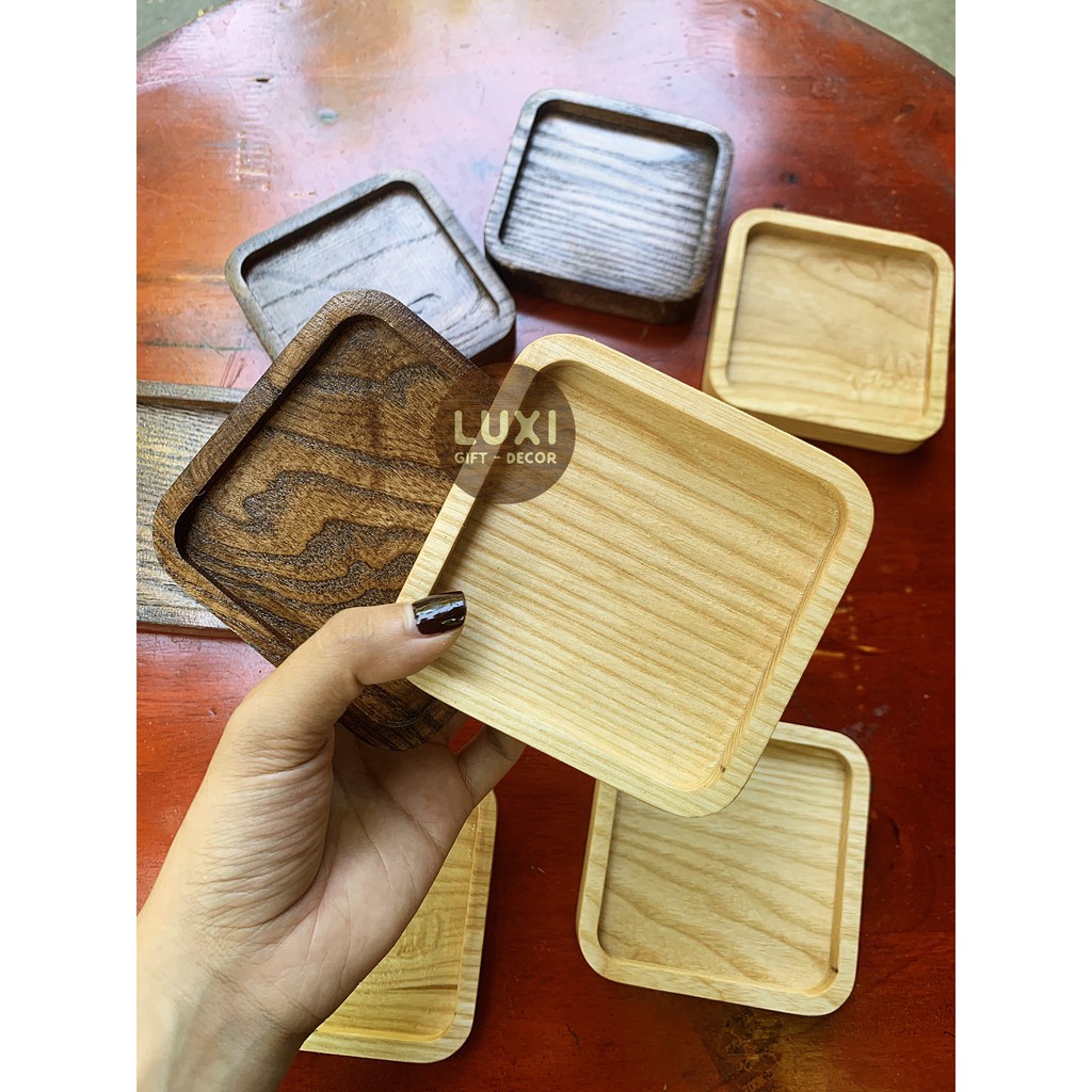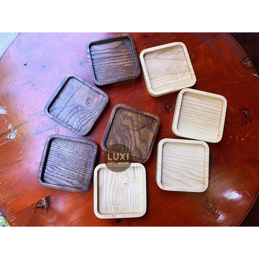 Lót ly gỗ / Khay gỗ để ly nước LUXI decor [FREE KHẮC LOGO]