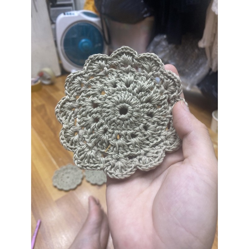 Bộ Lót ly handmade hình hoa làm bằng sợi cotton việt nam, chập đôibộ 6 miếng lót ly y hình