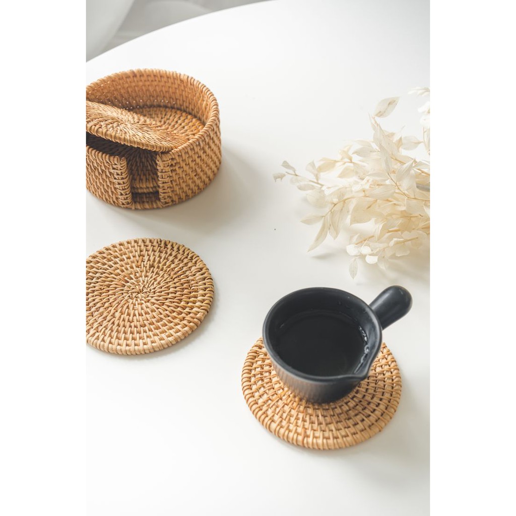 Tấm lót ly làm bằng mây kiểu dáng đơn giản tiện dụng, trang trí decor chụp ảnh, đĩa lót ly trà, cafeĐĩa lót ly trà, ly cafe