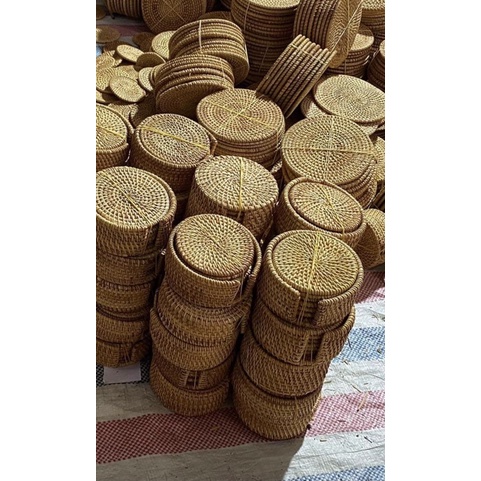 Tấm lót ly làm bằng mây kiểu dáng đơn giản tiện dụng, trang trí decor chụp ảnh, đĩa lót ly trà, cafeĐĩa lót ly trà, ly cafe
