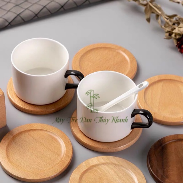 Lót ly lót cốc bằng gỗ tre bền đẹp miếng chụp decor