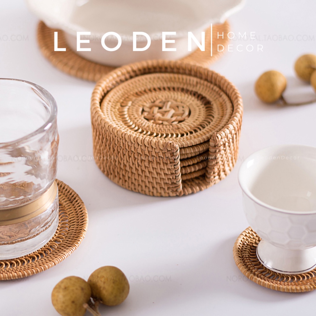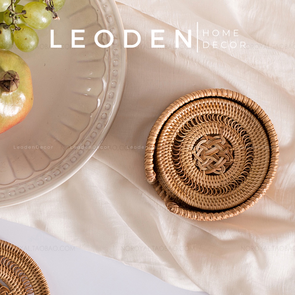Lót ly, lót cốc bằng mây guộc hình hoa nhiều kích thước, đế lót ly mây làm phụ kiện chụp ảnh decor -LEODEN DECOR✅ CAM KẾT SẢN PHẨM: