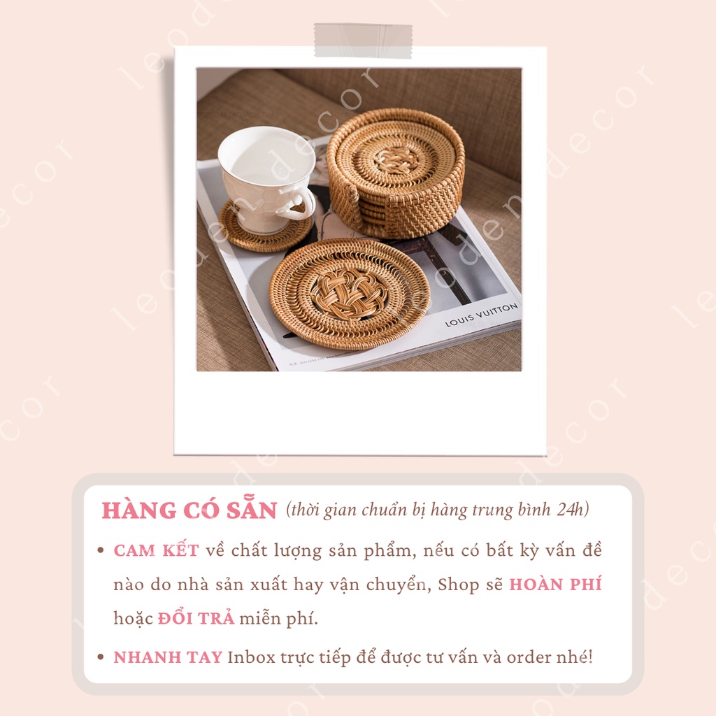 Nhà cửa & Đời sống > Bộ đồ bàn ăn > Khay, tấm lót bàn ăn || Lót ly, lót cốc bằng mây guộc hình hoa nhiều kích thước, đế lót ly mây làm phụ kiện chụp ảnh decor -LEODEN DECORCòn hàng