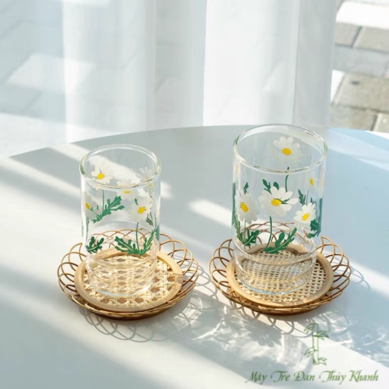 Lót ly, lót cốc mây hoa đan mắt cáo decor chụp hình