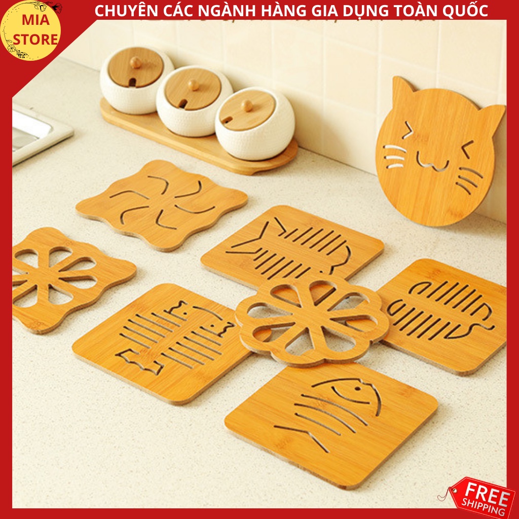 Nhà cửa & Đời sống > Bộ đồ bàn ăn > Khay, tấm lót bàn ăn || ❤️Lót ly lót nồi bằng gỗ vuông họa tiết dễ thương giá rẻ đồ dùng nhà bếp❤️Còn hàng