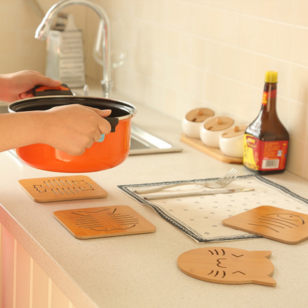 Nhà cửa & Đời sống > Bộ đồ bàn ăn > Khay, tấm lót bàn ăn || Lót ly lót nồi bằng gỗ vuông họa tiết dễ thương giá rẻ đồ dùng nhà bếpCòn hàng