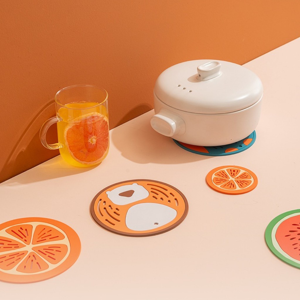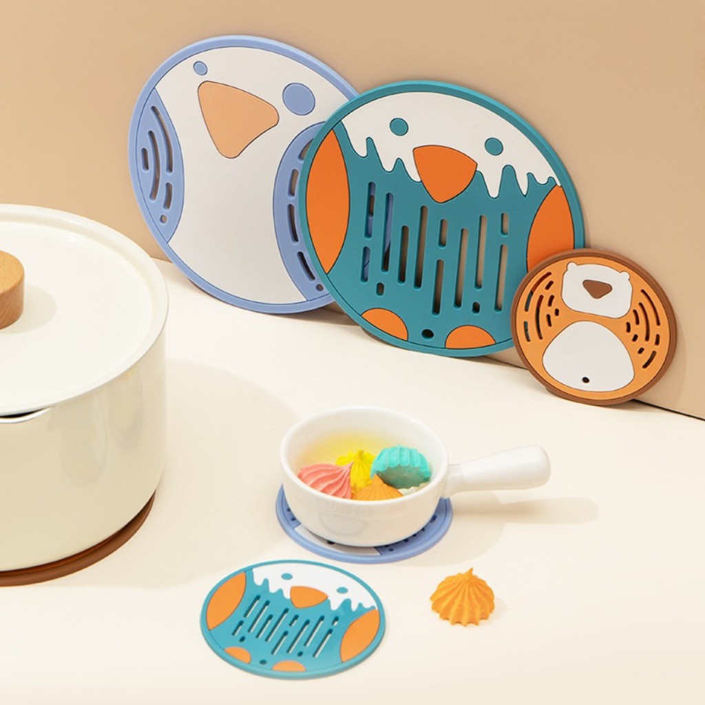 Tấm lót ly/ lót nồi cách nhiệt, thảm lót chống đóng cặn và chống nóng Silicon họa tiết hoạt hình chống thấm nước- Được làm từ chất liệu silicon mềm dẻo, khả năng chống thấm nước cao, dễ dàng vệ sinh và cất giữ, có thể xếp chồng lên nhau, chống trơn trượt giúp cố định vị trí cốc.