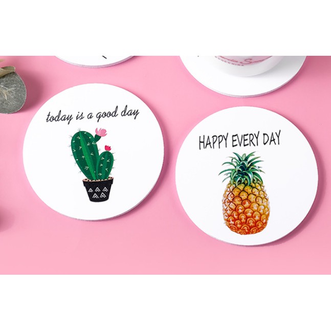 ** Lót ly chống nóng mẫu mới họa tiết trang nhã, xanh tươi.* Kích thước size lớn: đường kính 14.5cm, size nhỏ 10cm