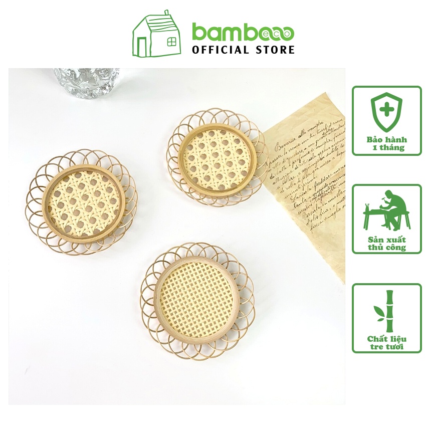 Nhà cửa & Đời sống > Bộ đồ bàn ăn > Khay, tấm lót bàn ăn || [Mã LIFEMALL2503 giảm 15% đơn 99K] Lót ly mây tre đan BAMBOOO ECO hàng xuất khẩu trang trí bàn ănCòn hàng