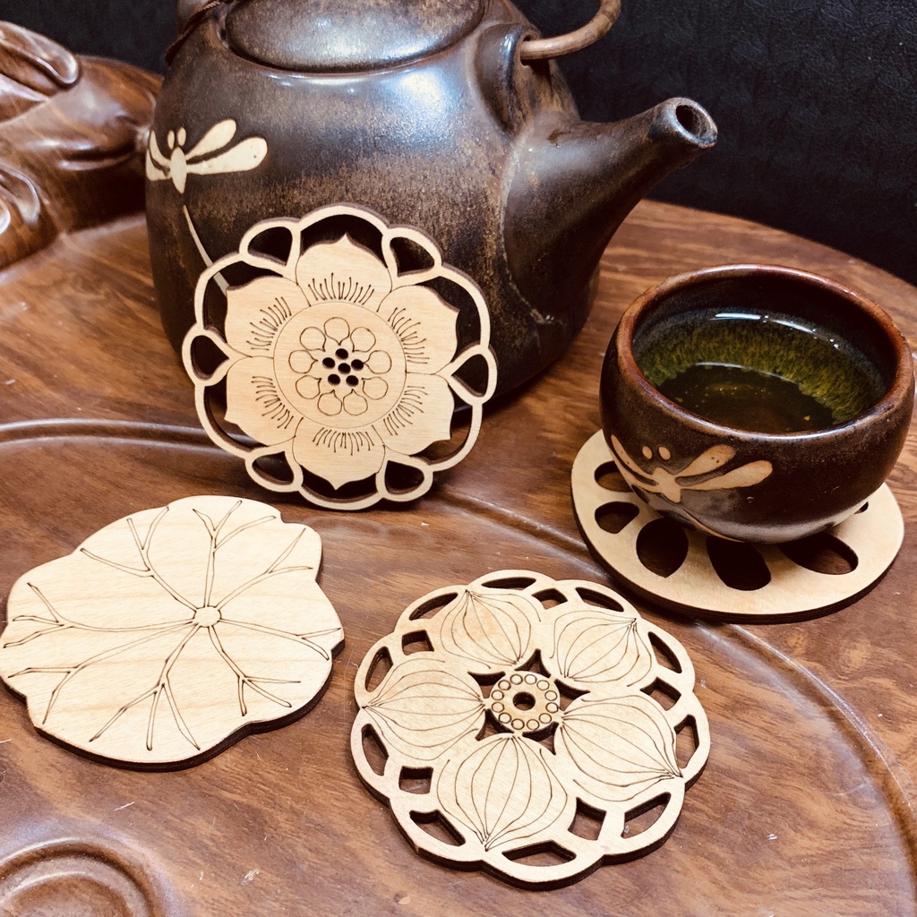 MIẾNG LÓT CỐC, ĐẾ LÓT LY ĐƯỢC LÀM TỪ GỖ TỰ NHIÊN VỚI HỌA TIẾT HOA SEN ĐẬM CHẤT THIÊN NHIÊN, LÀM CHO PHÒNG KHÁCH, QUÁN CAFE CỦA BẠN THÊM PHẦN SINH ĐỘNG.- Sản phẩm mang phong cách Thiên Nhiên, tối giản những chi tiết nhưng vẫn rất ngộ nghĩnh, vừa làm lót nồi, lót ly, vừa thổi bùng sức sống cho gian bếp, phòng ăn, phòng khách nhà bạn.