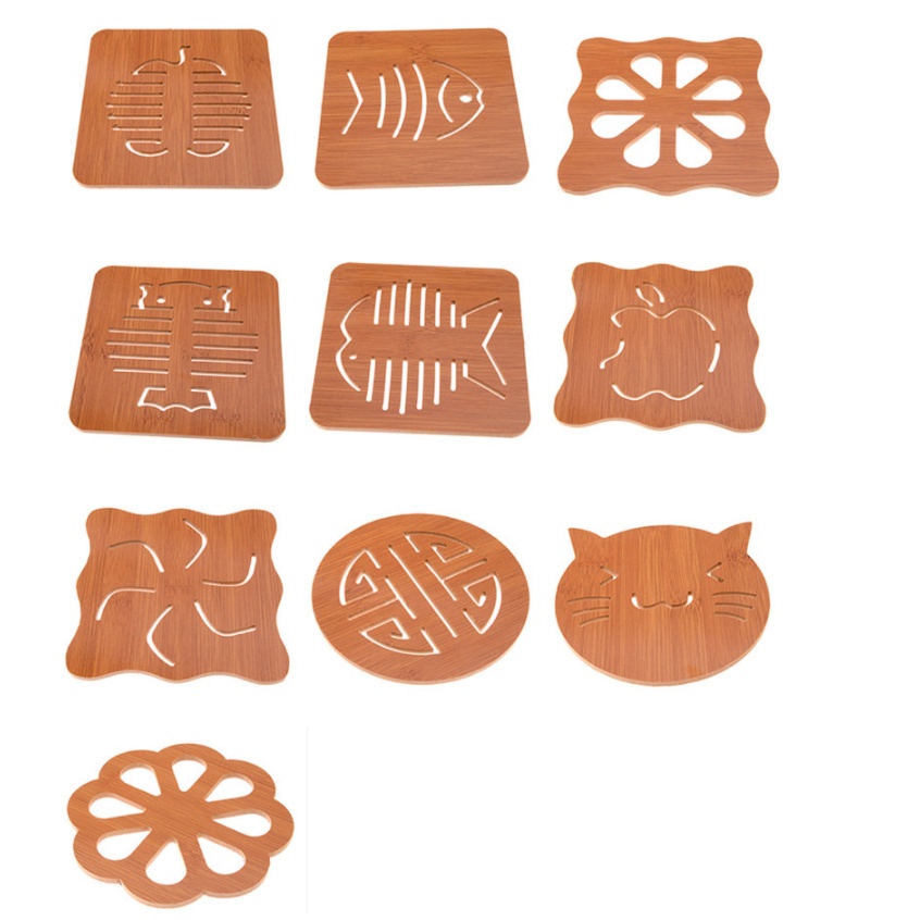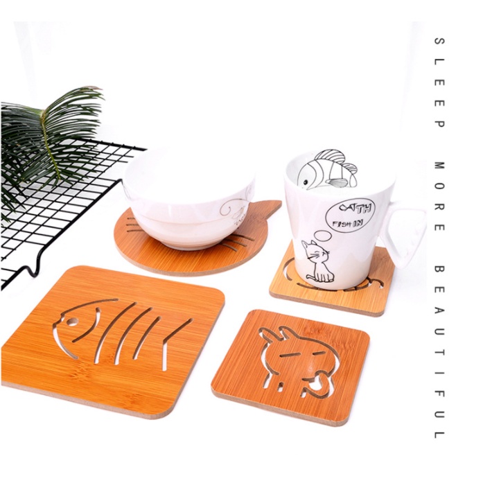 Nhà cửa & Đời sống > Bộ đồ bàn ăn > Khay, tấm lót bàn ăn || Lót ly - nồi - vật dụng bằng gỗ tiện lợi hoạt tiết dễ thương(14.8cm x 14.8cm)Còn hàng