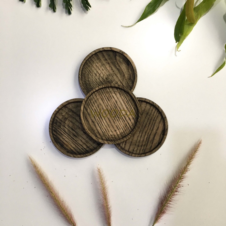 Lót ly tròn gỗ tự nhiên màu tối kích thước 10x10cm