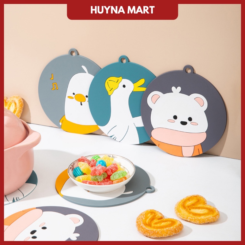 Nhà cửa & Đời sống > Bộ đồ bàn ăn > Khay, tấm lót bàn ăn || Tấm Lót Nồi, Bắc Nồi Tròn Silicon Cách Nhiệt Tròn, Hình Thú, Có Móc Treo Kích Thước 15cm Huyna Mart NB81Còn hàng