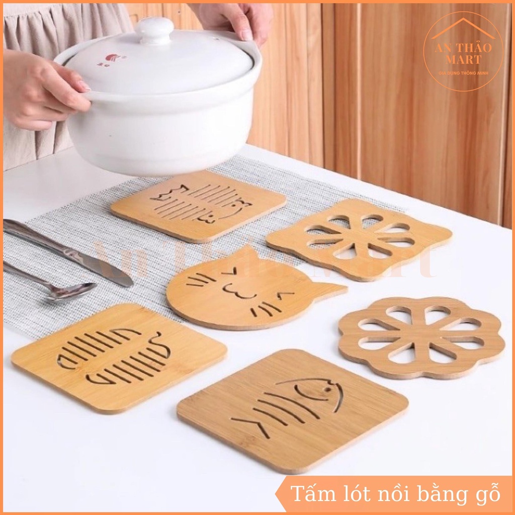 Giới thiệu Tấm Lót Nồi Bằng Gỗ Cách Nhiệt, Miếng Lót Cốc Chén Bát Nhiều Hình Xinh Xắn Tiện Dụng