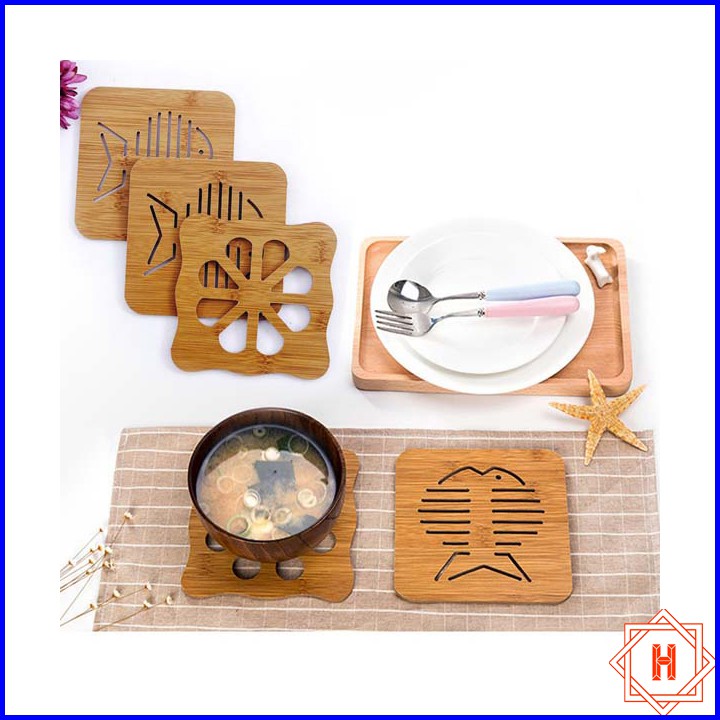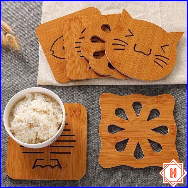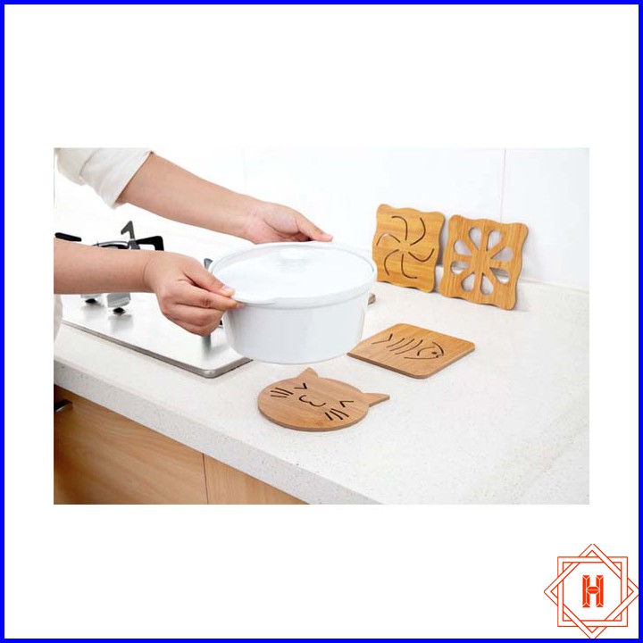 Nhà cửa & Đời sống > Bộ đồ bàn ăn > Khay, tấm lót bàn ăn || Lót nồi bằng gỗ hoạt tiết dễ thương tiện dụng { H }Còn hàng