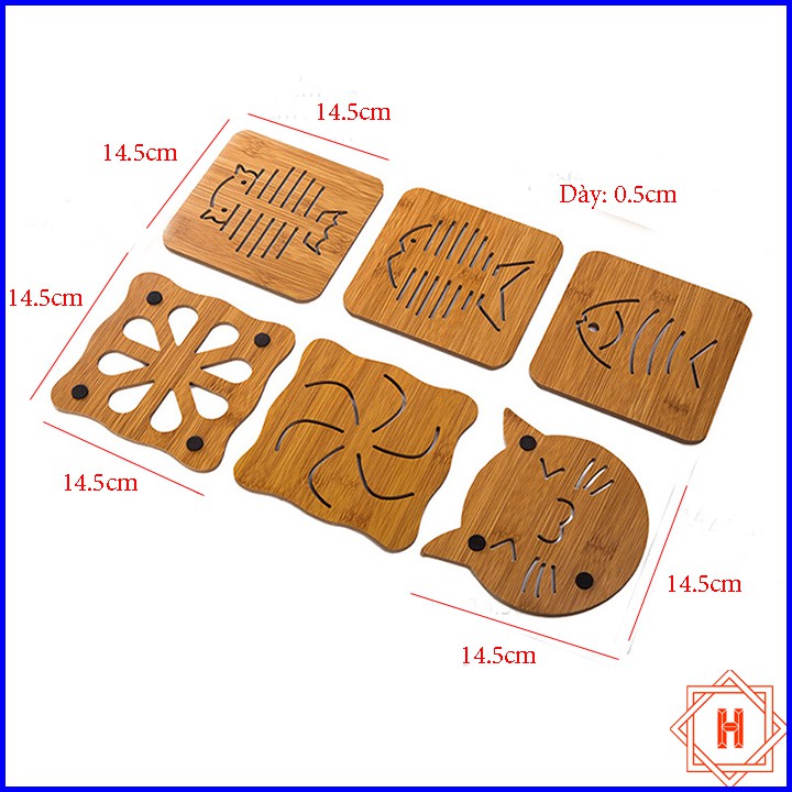 Giới thiệu Lót nồi bằng gỗ hoạt tiết dễ thương tiện dụng { H }