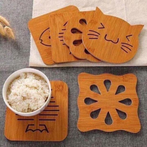 Nhà cửa & Đời sống > Bộ đồ bàn ăn > Khay, tấm lót bàn ăn || Tấm lót nồi bằng gỗ tre nhiều hình ngộ nghĩnhCòn hàng