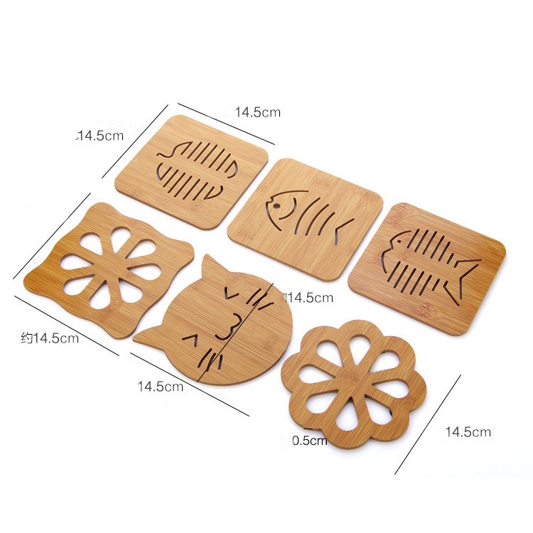 Nhà cửa & Đời sống > Bộ đồ bàn ăn > Khay, tấm lót bàn ăn || Tấm lót nồi bằng gỗ tre nhiều hình ngộ nghĩnh, decor căn phòngCòn hàng