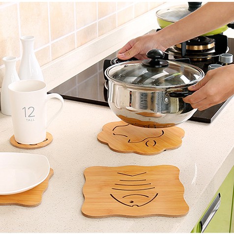 Nhà cửa & Đời sống > Bộ đồ bàn ăn > Khay, tấm lót bàn ăn || Lót nồi chống nóng bằng gỗ siêu dễ thươngCòn hàng