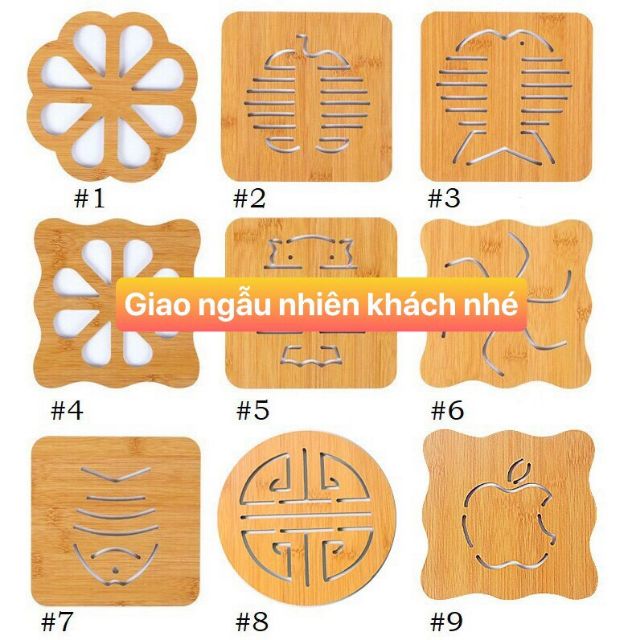 :P :P :P MIẾNG LÓT NỒI GỖ SANG CHẢNHMiếng lót ly giống hình 100% nhưng nhỏ hơn 8x8cm đừng nhầm giá thị trường đánh lừa khách nhé