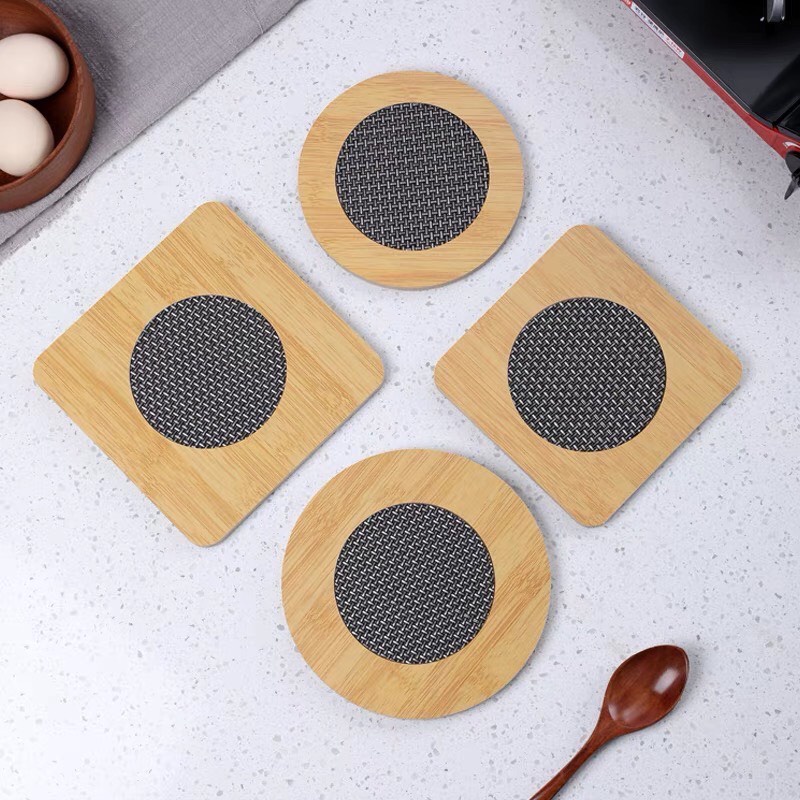 Lót nồi gỗ có lưới cách nhiệt đế cao su chống trượt kích thước 17cm x 17cm (SIZE TO,DÀY)
