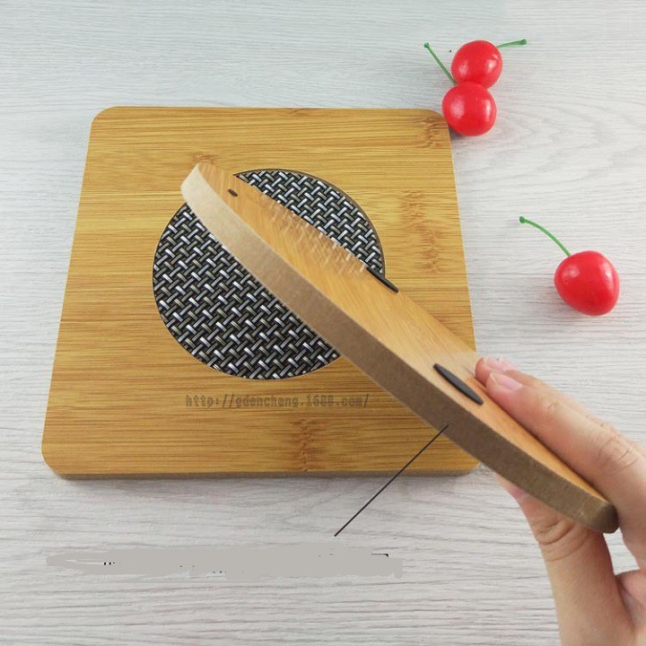 Lót nồi gỗ có lưới cách nhiệt đế cao su chống trượt kích thước 17cm x 17cm