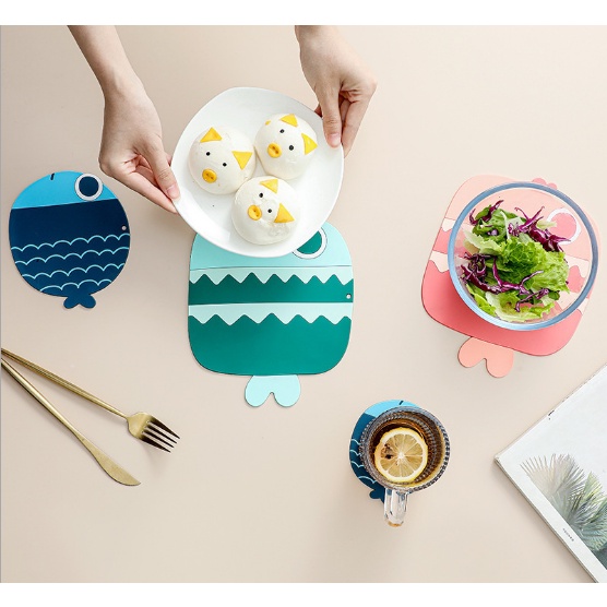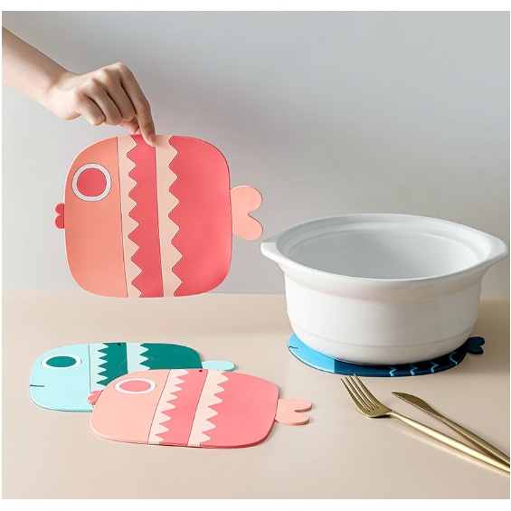 Nhà cửa & Đời sống > Bộ đồ bàn ăn > Khay, tấm lót bàn ăn || Lót nồi hình Cá silicon chịu nhiệt tốt, miếng lót bằng PVC mềm chống trượt, siêu tiện dụng, đẹp mắt G255-LNoi-caCòn hàng