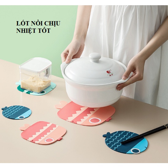 Lót nồi hình Cá silicon chịu nhiệt tốt, miếng lót bằng PVC mềm chống trượt, siêu tiện dụng, đẹp mắt G255-LNoi-ca