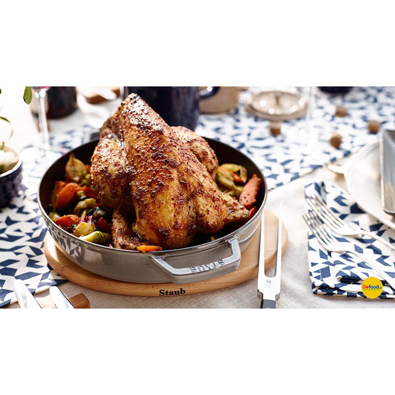 Về thương hiệu:Là thương hiệu nồi chảo gang thủ công hàng đầu tại Pháp dành cho gia đình, nhà hàng, khách sạn nổi tiếng, đặc biệt là những người yêu thích ẩm thực đang tìm kiếm trải nghiệm nấu ăn đích thực và giàu cảm xúc, Staub kết hợp chặt chẽ giữa kỹ thuật thủ công truyền thống và công nghệ hiện đại. Nổi bật là công nghệ đúc gang nguyên khối và tráng men màu độc đáo giúp cho Staub mang hình thức bắt mắt, màu sắc tinh tế và sang trọng có thể đặt trực tiếp trên bàn ăn.