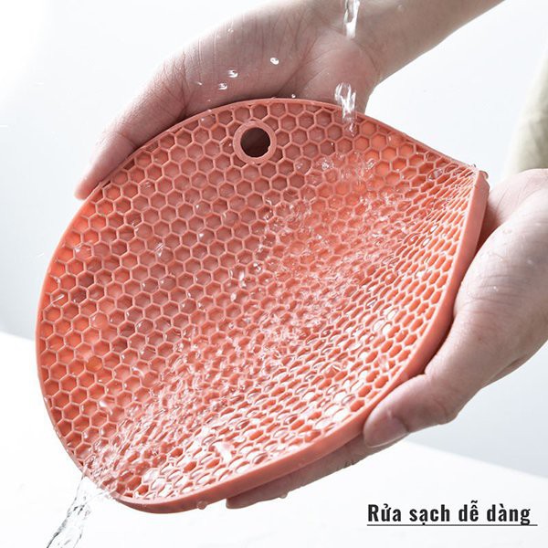 ✅ DỄ DÀNG VỆ SINH VÀ PHƠI KHÔ CẤT GỌN: Chất liệu SILICON không thấm nước giúp việc rửa vết bẩn, vết dầu mỡ trên MIẾNG LÓT NỒI thật dễ dàng, đặc biệt MIẾNG LÓT NỒI có lỗ treo giúp cho việc phơi ráo và cất gọn.