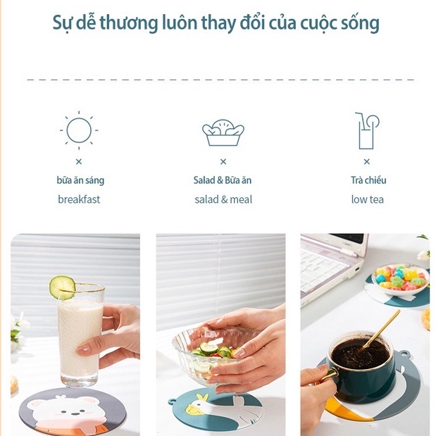 Lót Nồi Silicon Chống Nóng, Miếng Lót Cốc Chống Thấm Hoạt Hình Dễ ThươngĐẶC ĐIỂM NỔI BẬT