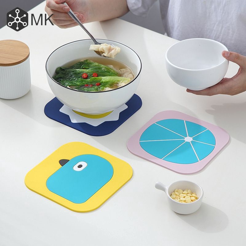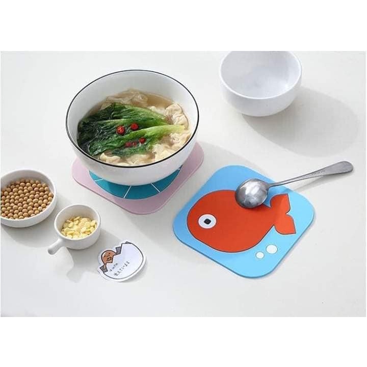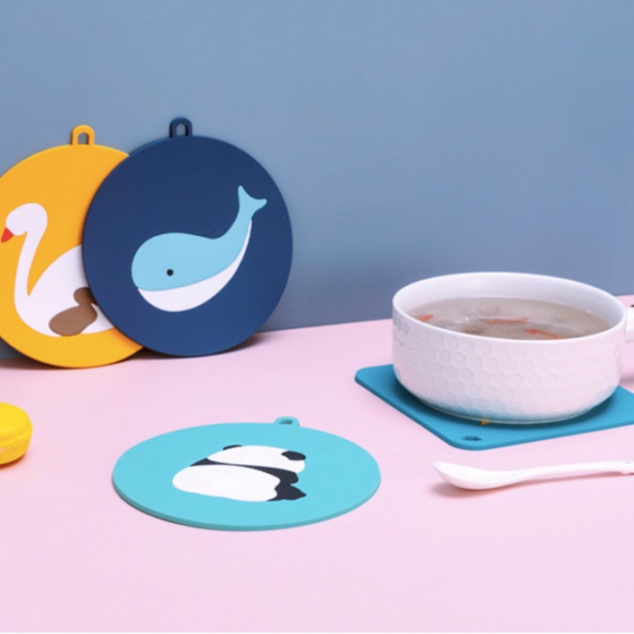 - Tấm lót nồi giúp hạn chế tiếp xúc nhiệt độ cao từ xoong, nồi đến các bề mặt khác.Màu sắc trang nhã, thiết kế họa tiết hình thú đẹp tạo cho không gian bếp nhà bạn thêm sang trọng. Miếng lót nồi bằng silicon không bị mối mọt hay rạn nứt, mang lại hiểu quả sử dụng lâu dài.