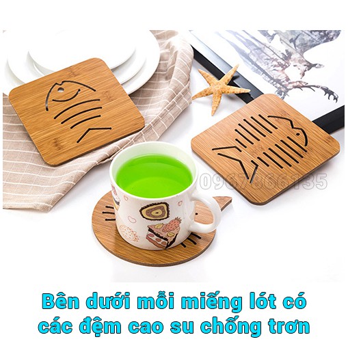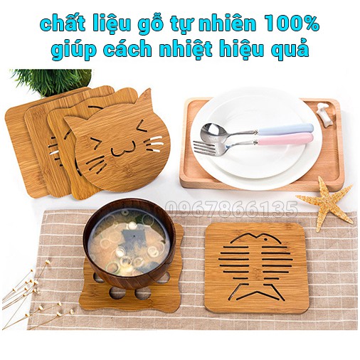 Tấm lót xoog nồi, bát đĩa, cốc chén bằng gỗ tre nhiều hình dễ thươngChống nóng, chống bám mùi, chống trơn trượt