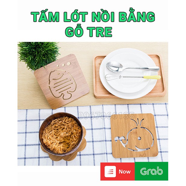 Tấm lót nồi xoong/ bát/ cốc chén bằng gỗ tre nhiều hình cách nhiệt, chống nóng, chống bám mùi Miếng lót nồi