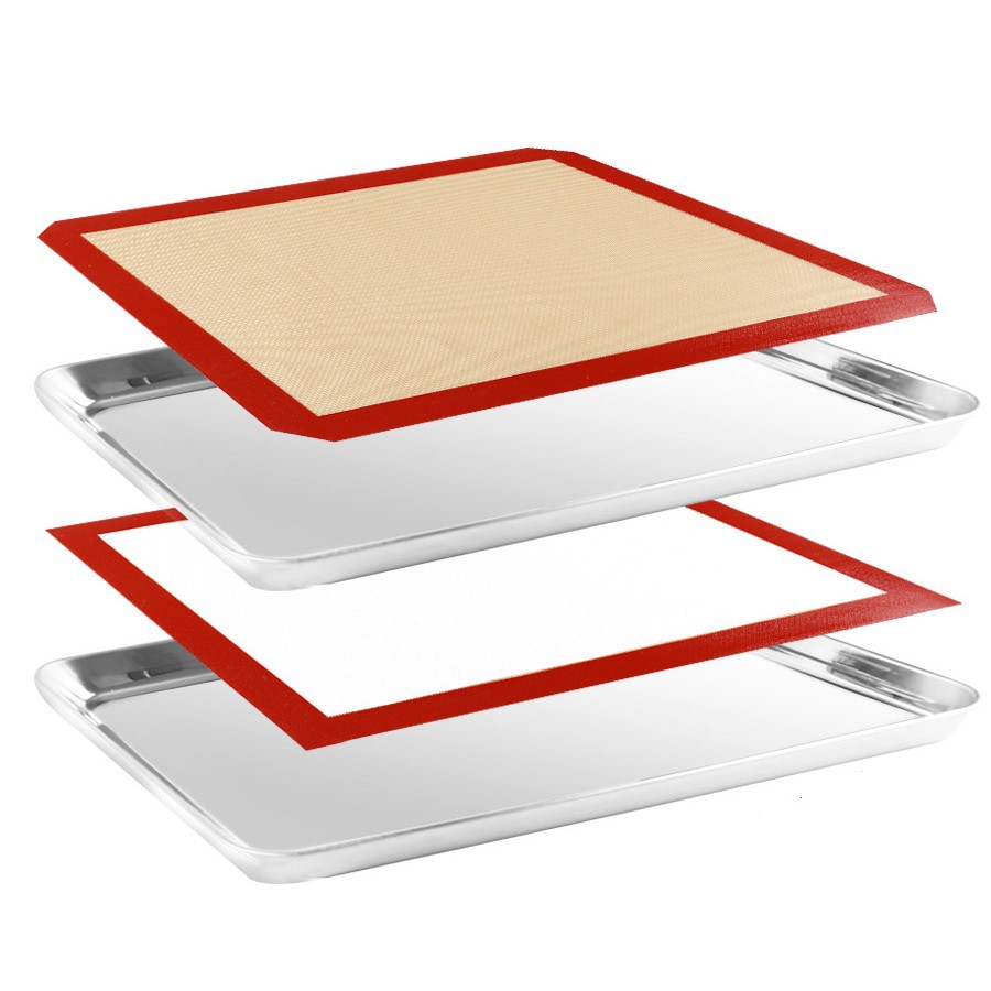- Bề mặt chống dính: Tấm lót nướng silicon được xử lý bằng công nghệ chống bám dính đặc biệt. Lót silicon chống dính thích hợp nướng bánh macaron, bánh quy, bánh mì.