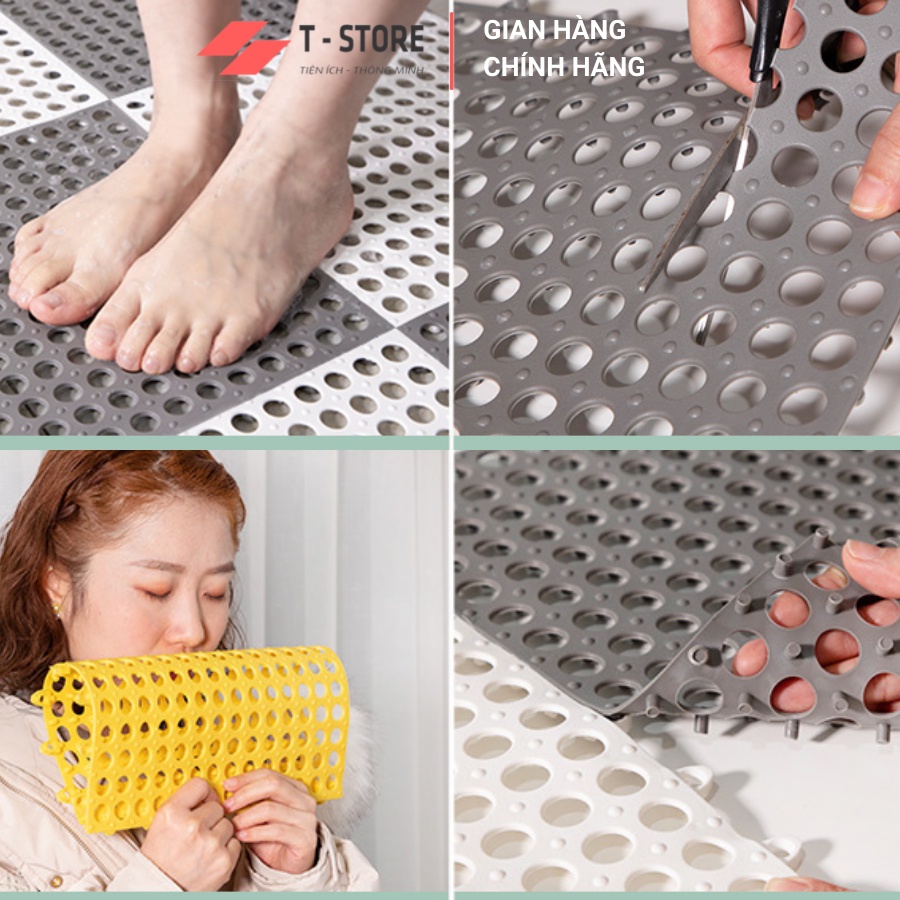 • Vỉ nhựa lót sàn chất liệu nhựa PVC chống trơn trợt, mặt dưới có độ sâu và các gân chịu lực khả năng chống nước cực cao, nhẹ êm chân, an toàn tuyệt đối cho người già và trẻ nhỏ!