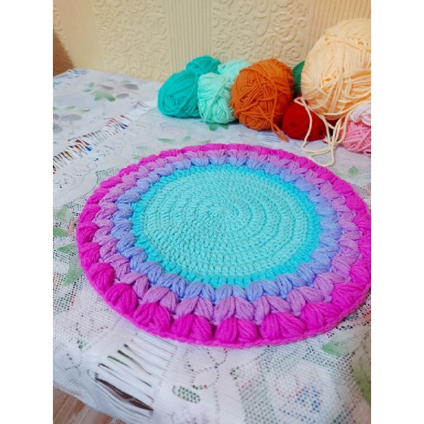 Tấm lót trang trí, dùng lót bình hoa, lót ly, lót bình trà,....hoặc để bàn trang trí, decor chụp ảnh...Được móc bằng len mềm
