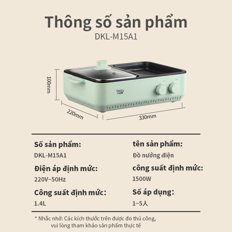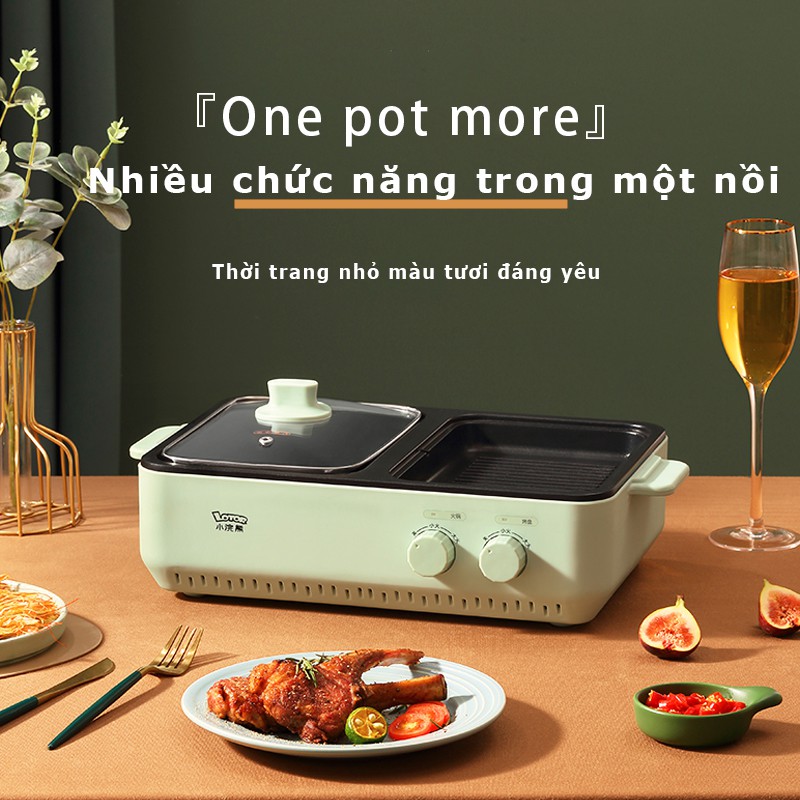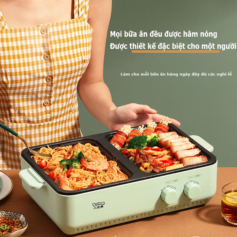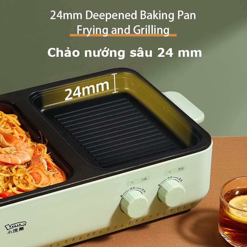 Nồi lẩu điện, bếp nướng điện đa năng 1.4L Lotor DKL-M15A1, khay nướng lớn chống dính - BH 12 Tháng