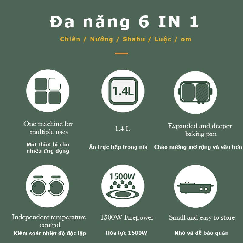 🚚 Gửi hàng từ kho Hà Nội, hàng được gửi đi nhanh chóng từ 2- 3 ngày, tất cả sản phẩm của shop đều được bảo hành 1 năm!Có thể vừa nhúng lẩu vừa nướng cùng lúc, một bữa ăn có cả hải sản và thịt thì còn gì bằng. Chế độ kiểm soát nhiệt độc lập, tuy nấu cùng lúc nhưng chỉnh nhiệt riêng biệt thức bạn thoải thái thưởng thức nồi lẩu nướng kết hợp, đánh thức vị giác của bạn.