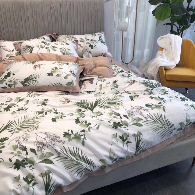 - 1 ga trải giường màu giống mặt trong của vỏ chăn freesize, (báo shop kích thước đệm nhà mình để shop may cho vừa vặn nha )