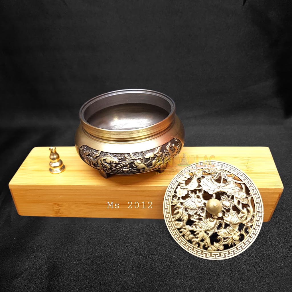 Ngoài việc thắp hương, phong tục sử dụng trầm viên hoặc trầm bột trong thờ cúng cũng trở nên khá phổ biến hiện nay tại Việt Nam, đặc biệt là các gia đình thờ Phật. Và tất nhiên, một dụng cụ không thể thiếu đó chính là lư đốt trầm hương.Sản phẩm được làm bằng chất liệu đồng nguyên chất chắc chắn, màu sắc ấn tượng, khiến cho lư đồng trở nên cao cấp và sang trọng hơn. Các hoa văn trên lư được chạm khắc vô cùng đẹp mắt với các hình ảnh lấy cảm hứng từ văn hóa truyền thống Việt Nam là hình Rồng và Phượng hòa quyện vào nhau ,hình Bông Sen , hình Cá. Nắp đậy có các lỗ thoát khói được cách điệu bằng chính các khoảng trống trong hoa văn trang trí vừa đem lại tính thẩm mỹ cao vừa đảm bảo công dụng của nắp lư. Thân lư trầm có hình bầu với ba chân chắn chắn, có các thiết kế chạm khắc nổi