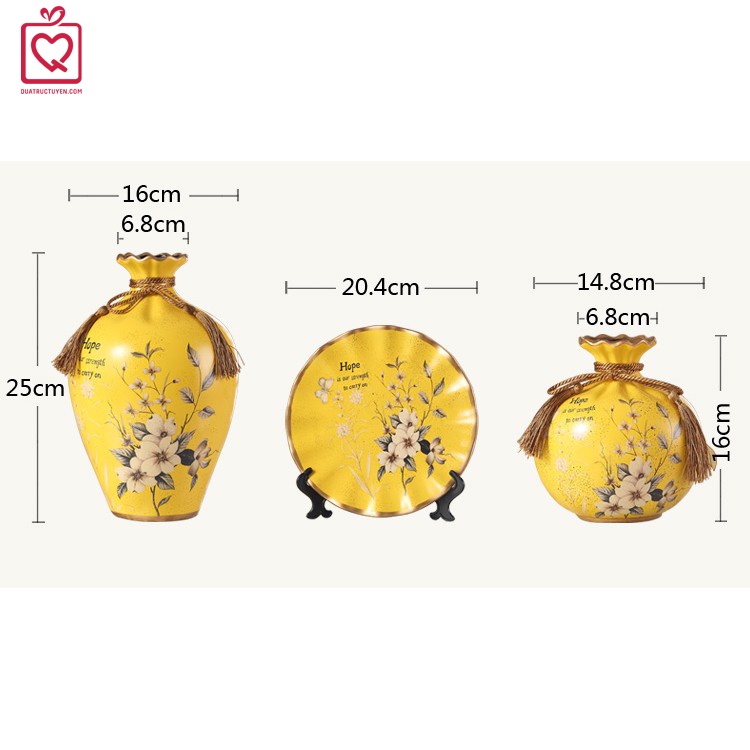 - Kích thước: Bình lớn 16 * 25cm - Bình nhỏ 14.8 * 16cm - Đĩa đường kính 20.4cm
