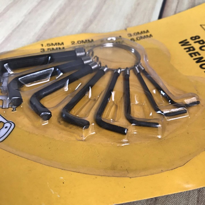 Bộ lục giác 8 cây cực kỳ Tiện dụngBộ lục giác 8 cây cực kỳ Tiện dụng gồm khóa 8 kích cỡ khác nhau được móc chung một móc khóa tròn, rất thuận tiện trong việc bảo quản và di chuyển