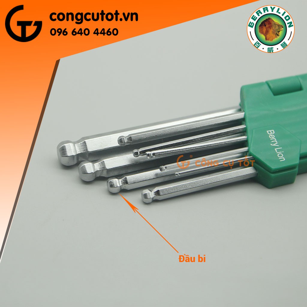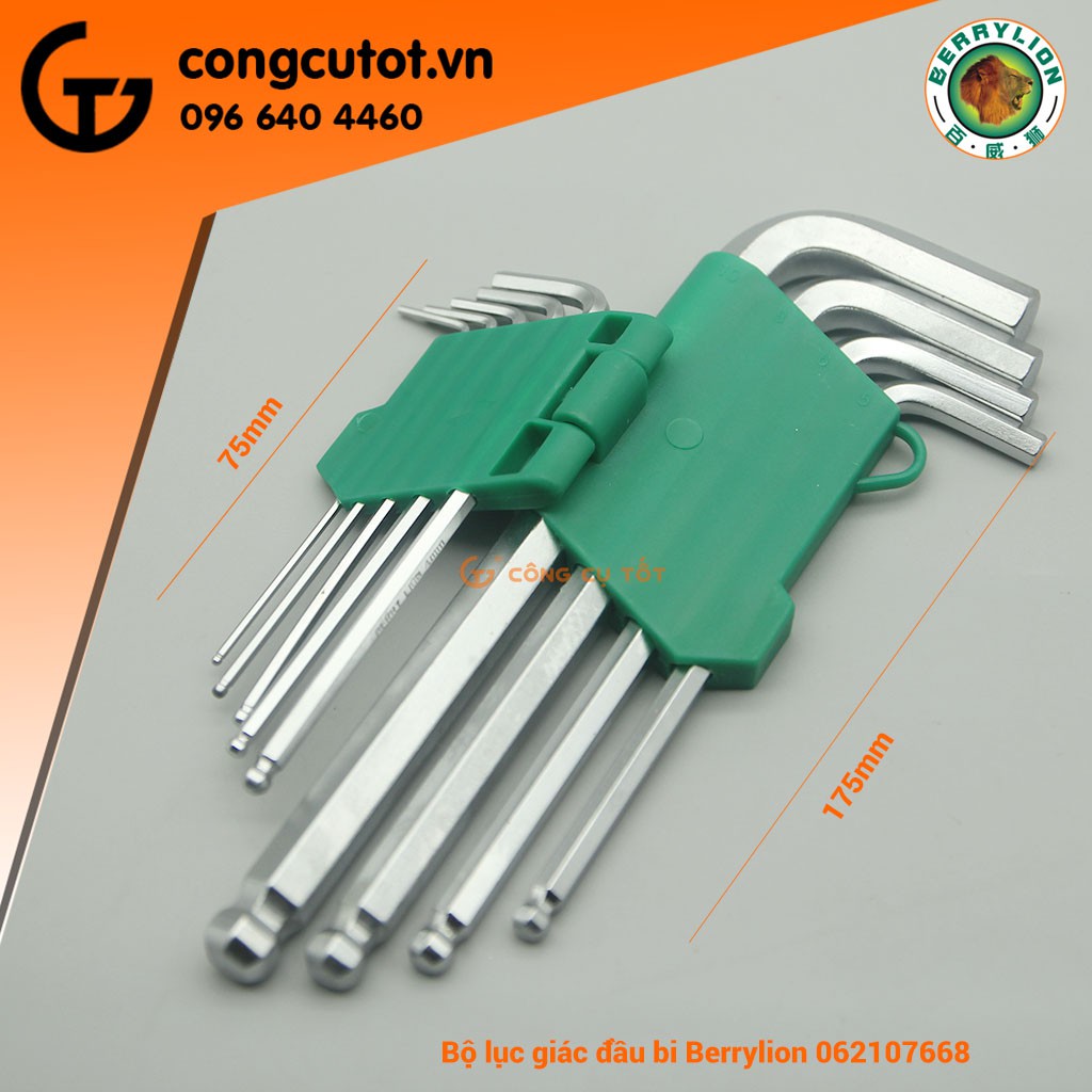 Bộ lục giác 9 cây đầu bi chữ L 1.5mm - 10mm Berrylion dài 17mm 062107668