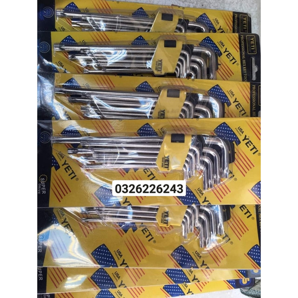 Bộ Lục Giác 9 món Đầu Bi, bông Lớn Yeti chuẩn độ cứng hàng công ty chính hãng