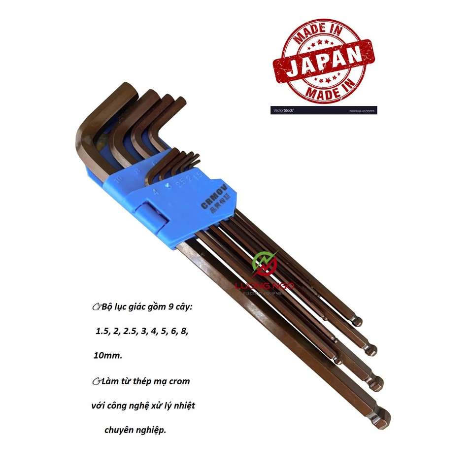 Nhà cửa & Đời sống > Dụng cụ & Thiết bị tiện ích > Dụng cụ > Khác || Bộ Lục Giác Bi CROMV 9 Đầu Loại Dài - Lục Gíac Hoa thị (Chính Hãng)Còn hàng