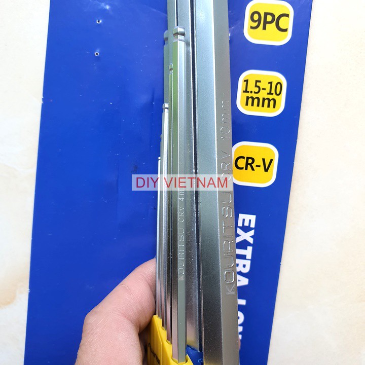 Bộ gồm 9 cây lục giác: 1.5mm, 2mm, 2.5mm, 3mm, 4mm, 5mm, 6mm, 8mm,10mmThương hiệu : KOURITSU Nhật Bản